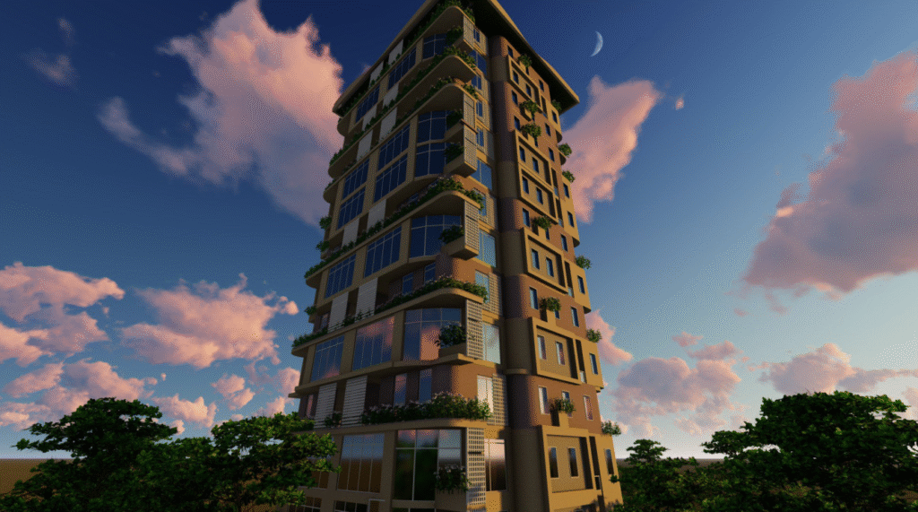 المشروع عبارة عن مبنى سكني مستدام تم دمج عناصر الطبيعة في تصميمه بشكل غير تقليدي، حيث تم توظيف الخضار والمشربيات الطبيعية كجزء أساسي من النظام البيئي للمبنى.