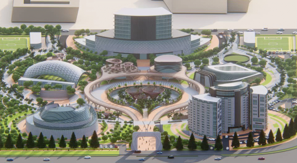 يُعد مشروع مركز الأنشطة الطلابية في توسع جامعة حلب مشروعًا ذا توجه مستدام، إذ يجمع بين التعليم والثقافة والرياضة والسياحة ضمن بيئة عمرانية متكاملة. يتميز بوفرة المساحات الخضراء والساحات العامة التي تعزز التفاعل الاجتماعي وتخفف من الأثر البيئي، كما أن تصميم الرصف والفراغات المفتوحة يخلق بيئة مريحة وصديقة للطلاب. ورغم غياب حلول تقنية واضحة للطاقة والمياه، فإن المشروع يحقق مبادئ الاستدامة على المستويين البيئي والاجتماعي